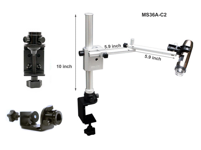 The MS36A-C2 clamp stand is designed for general purpose and built with quality. With smooth focus adjustment and quick vertical movement, the MS36A-C2 eases the task of focusing when using Dino-Lite microscopes. The ease-of-assembly and adaptable extension arms design add further mobility and flexibility to user’s applications.