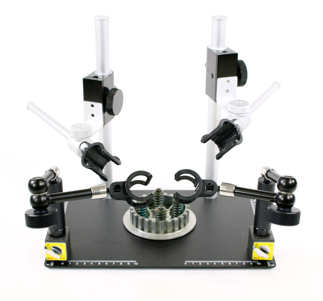 The MS37B-26MV2 is a quad scope (4 microscopes sold separately) inspection stand with a single solid base. This version includes 2 'single-lock arms' for multi-angled viewing and 2 boom arms. The...