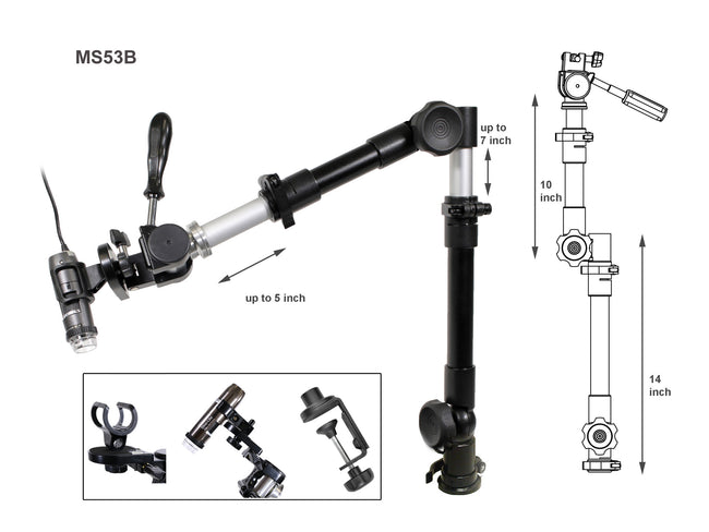 The MS53B is a jointed articulating flex-arm type stand with a holster for use with the Dino-Lite handheld digital microscopes. The precision machine crafted components provide smooth adjustment and unlimited...