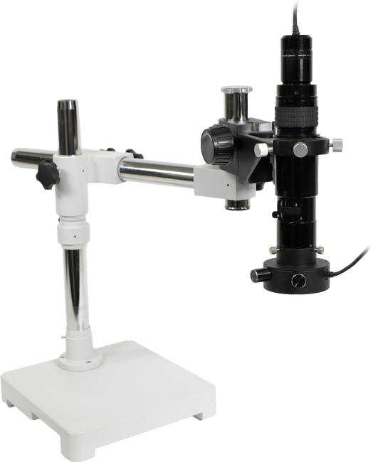 The MS55B is a heavy-duty boom arm stand with fine adjustment knobs and our heaviest industrial base. This base provides a sturdier stand with fine focus knobs and an adjustable boom arm for a larger viewing area. Vertical adjustment with positioning up and down the main pole as well as additional control the holster positioning provides the most precise adjustment
