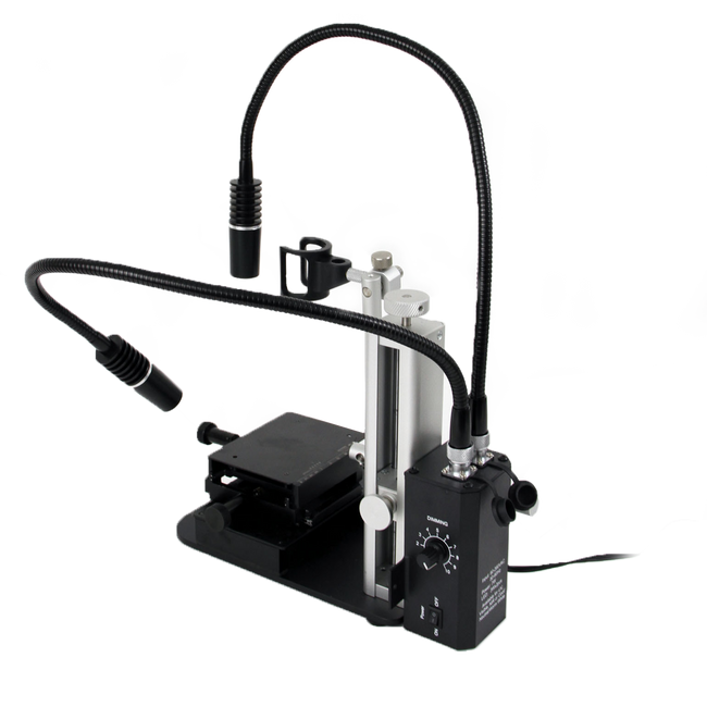 The MSAK813-U2 supplemental Dual UV 361nm LEDs articulating spotlight can be used with the RK-10A stand for Ultraviolet light with brightness controls. These very bright dual 361nm LED use flex arms that can be placed in any desired position and has a dimmer for 0-10 brightness control.