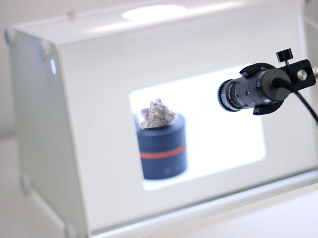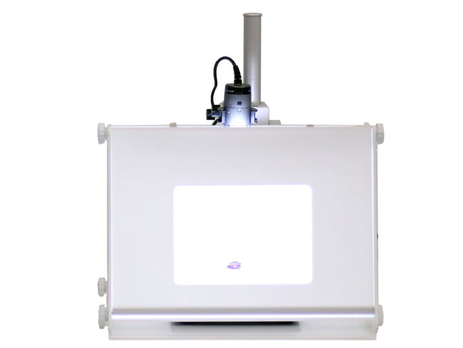Photo box for premium image capture when lighting and color matters and is designed for image capture for numismatics and jewelry. Includes an 8" light tube. This stand allows you to place the Dino-Lite outside of the box and view from the open slot. Powered by an included AC Adapter, this photo box helps eliminate outside light pollution and other factors that could disturb your photo imaging.