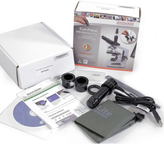 The first eyepiece with the high quality Edge Series class optics and high-resolution sensor, the 5MP Dino-Eye Edge Series AM7025X offers remarkable image performance while providing a relatively larger field of view than its predecessors. The AM7025X design and included adapters allows for fitment within 23mm, 30mm, 30.5mm or c-mount eyepiece slots which can be fixed into ideal focal positions. With fine color reproducibility, the AM7025X is capable of capturing the finest details of a microscope’s view for a wide range of professional applications